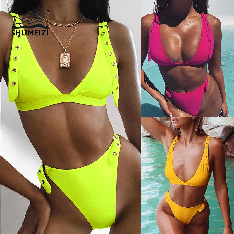 Buy Neon bikini 2019 V-neck brazilian Adjust Strap swimsuit female Push up swimwear women bathing suit Right Here and Right Now Just for USD US $10.99, Price will be rise up at any time without notification and I cant guaranted that the stock is still available tommorow or next hour. So Please Save It Now!